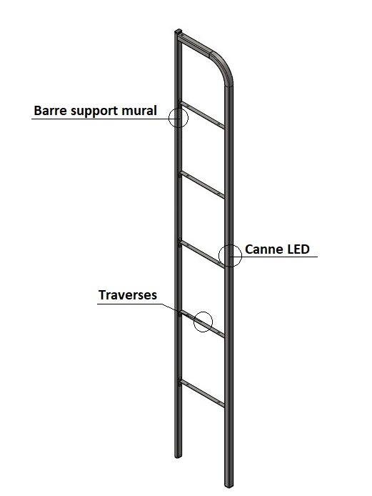 Les traverses permettent de relier la canne LED à la barre support mural, elles permettent de créer les supports destinés aux éléments d’agencement.